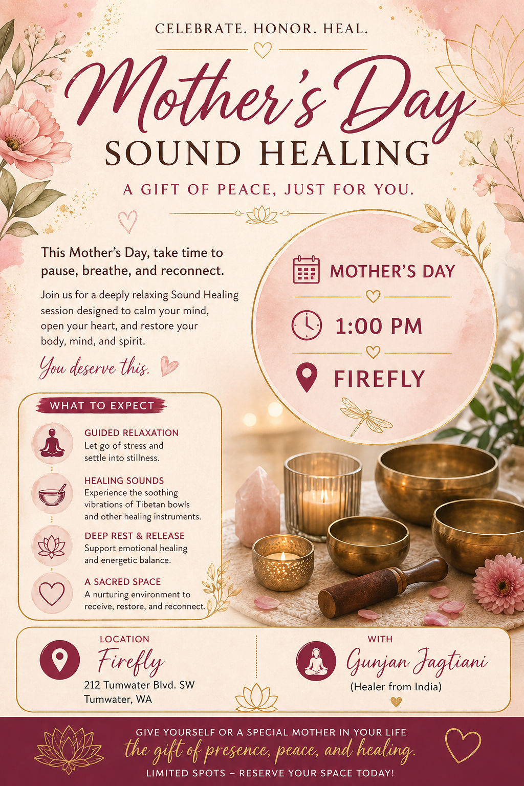 1:30 to 3:30 p.m. April 26 at our Tumwater Firefly Studio