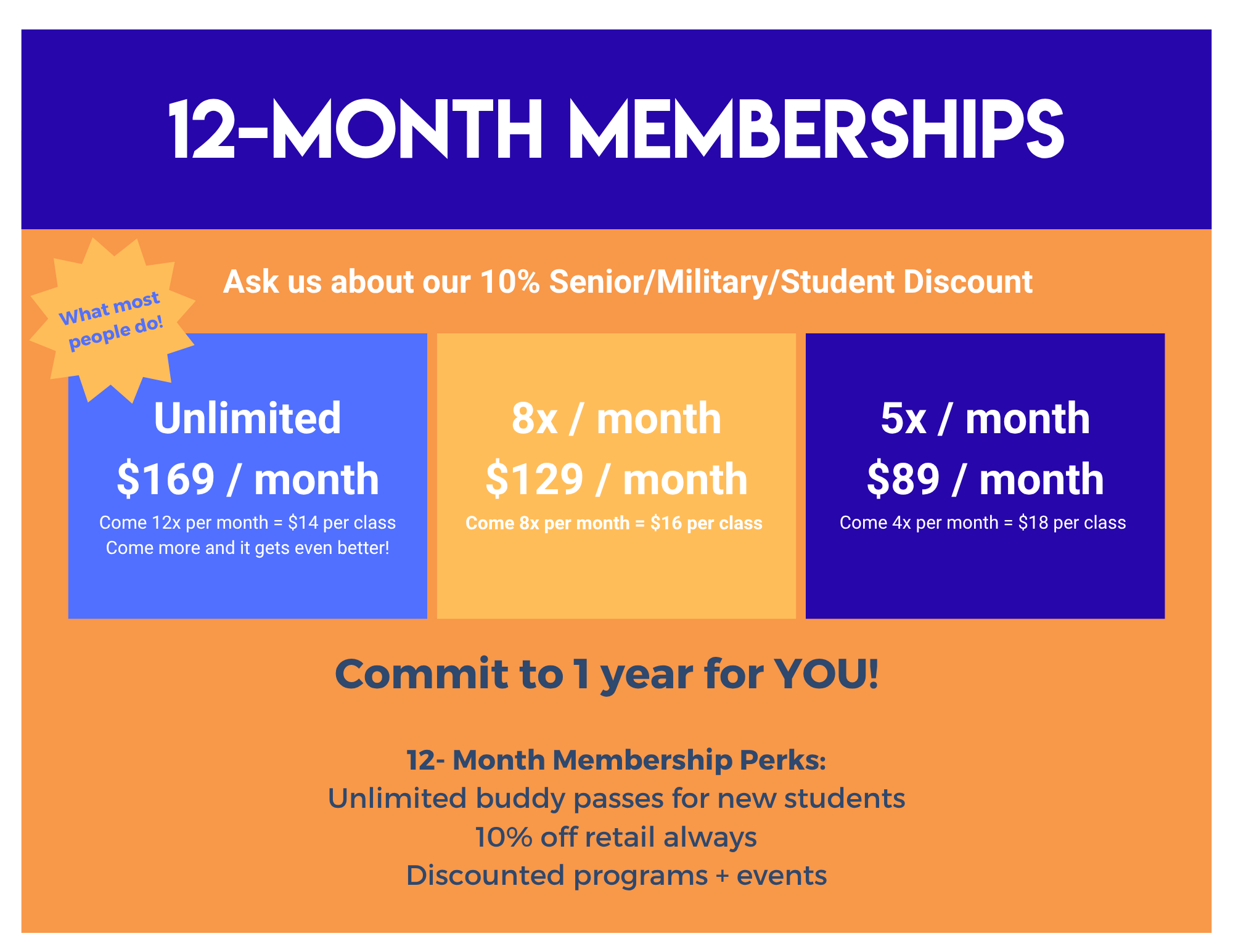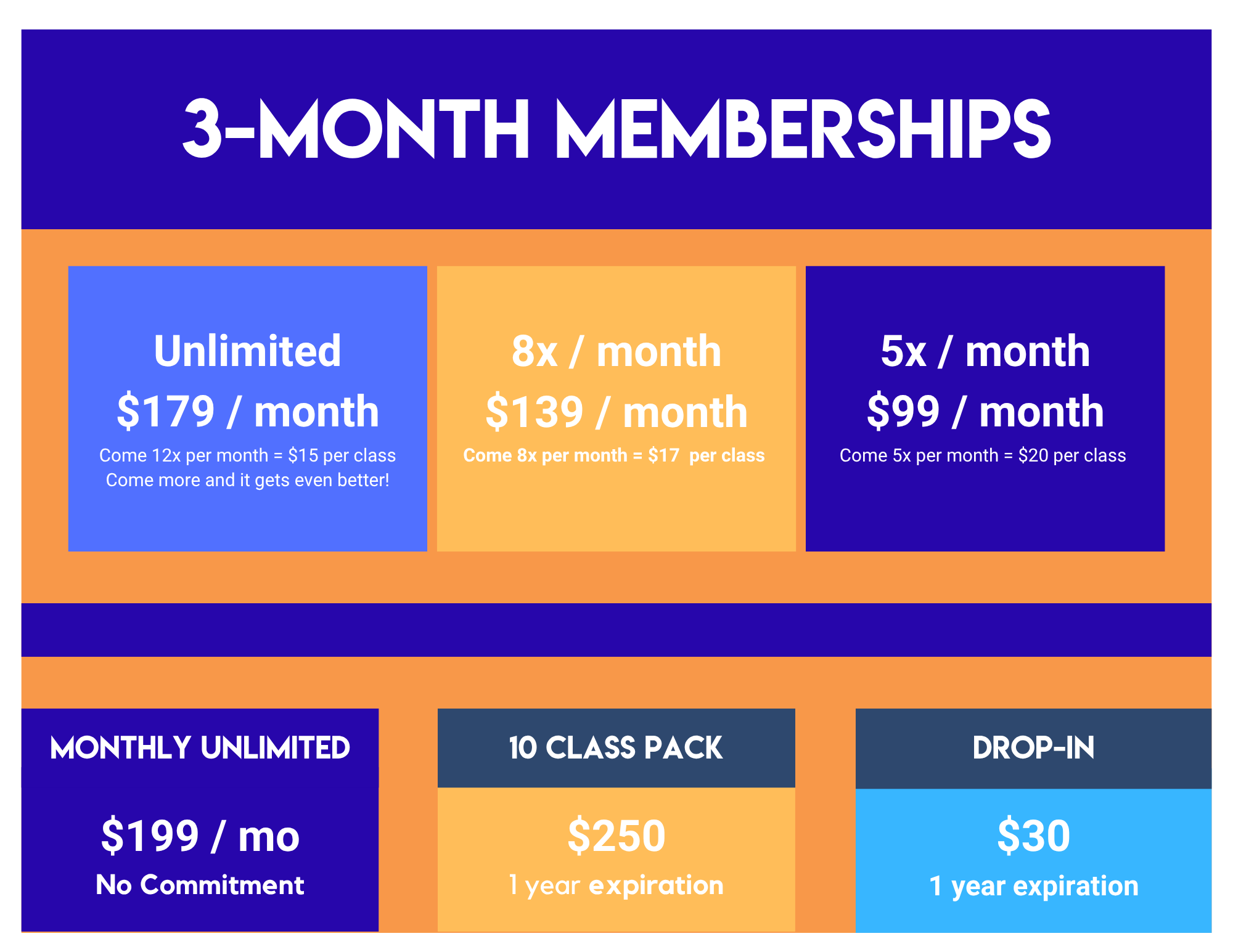 2 WEEKS of UNLIMITED classes or 5 classes in a month