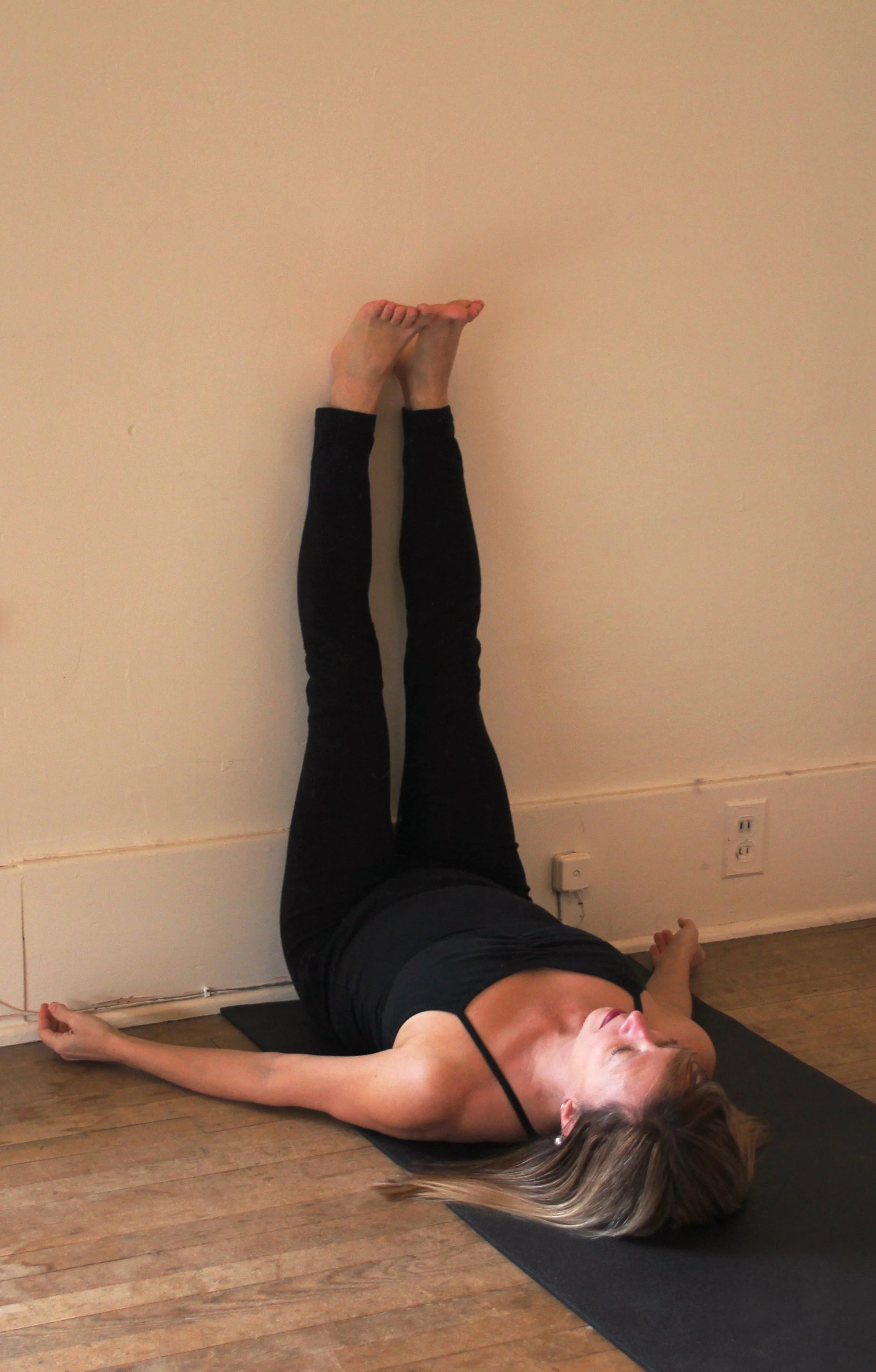 It is super beneficial to get upside down. Putting your legs up on a wall, a chair or a table, allow your hips to relax and take some deep breaths while the blood flow moves down into your major organs and lymphatic system. This is a great way to down regulate your system and improve your immune system. This is great to do after work or with another chair to elevate your legs during the day.